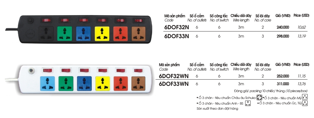 - Số ổ cắm: 06 ổ cắm 2 chấu