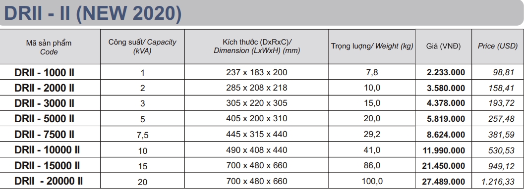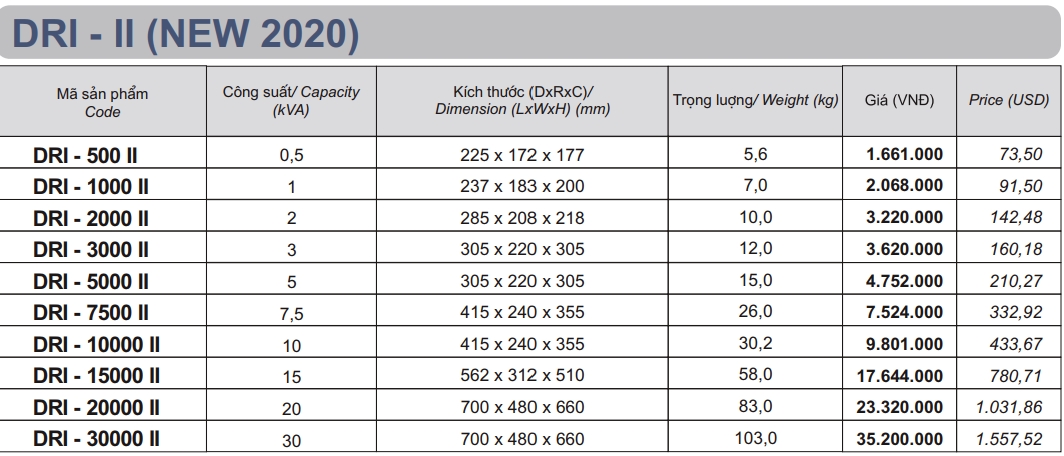 - Công suất từ 500va - 30kva