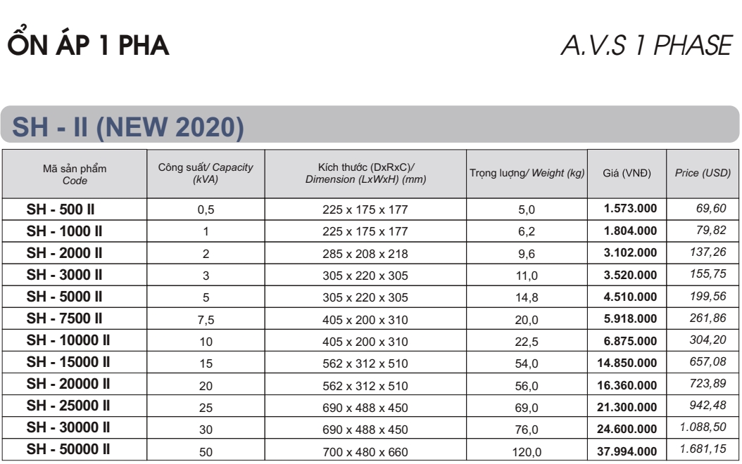 Thương hiệu: Lioa Nhật Linh Loại: Bảng giá ổn áp lioa 1 pha