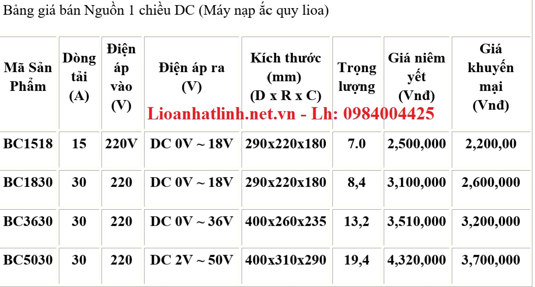 2, NẠP ẮC QUY LIOA 15A - 30A LOẠI THÔNG DỤNG