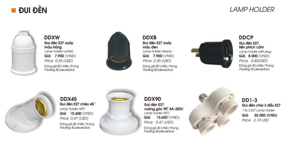 - Mời quý khách xem chi tiết đui đèn lioa các loại bảng giá dưới đây