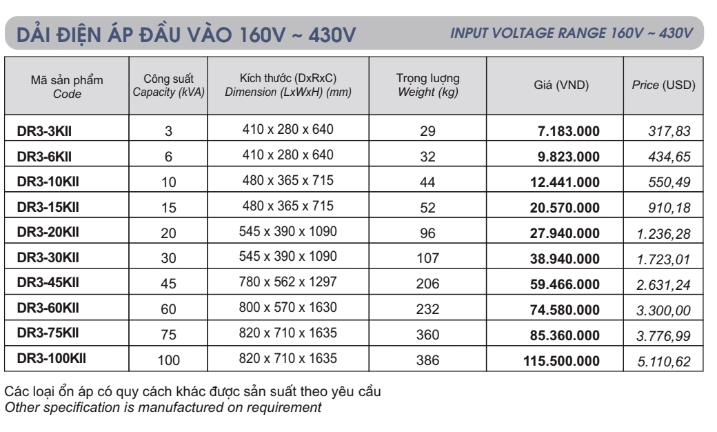 Mã sản phẩm lioa 3 pha 10kva dải thường thế hệ 1 |