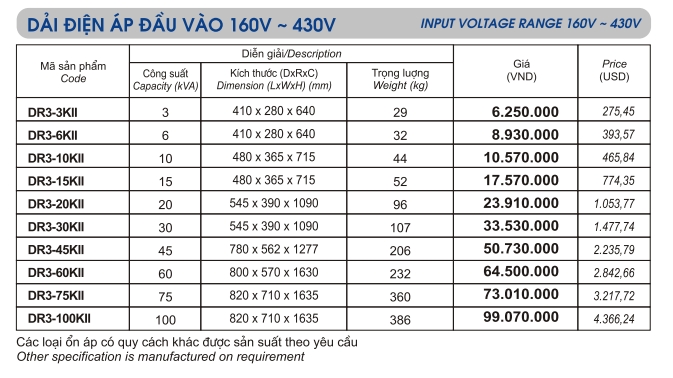 - Giá lioa 3 pha 15kva DR3 - 15K II công ty chúng tôi bán là: 13.500.000vnđ ( Đã bao gồm thuế vat và phí vận chuyển trên toàn quốc)