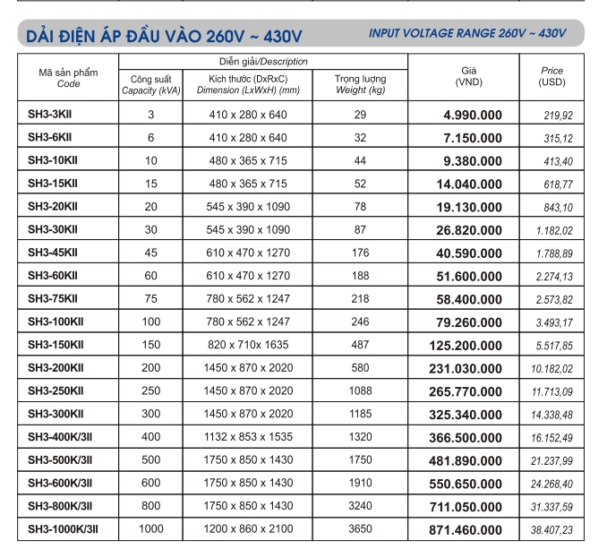 Mã sản phẩm ổn áp lioa 15kva 3 pha dải rộng |