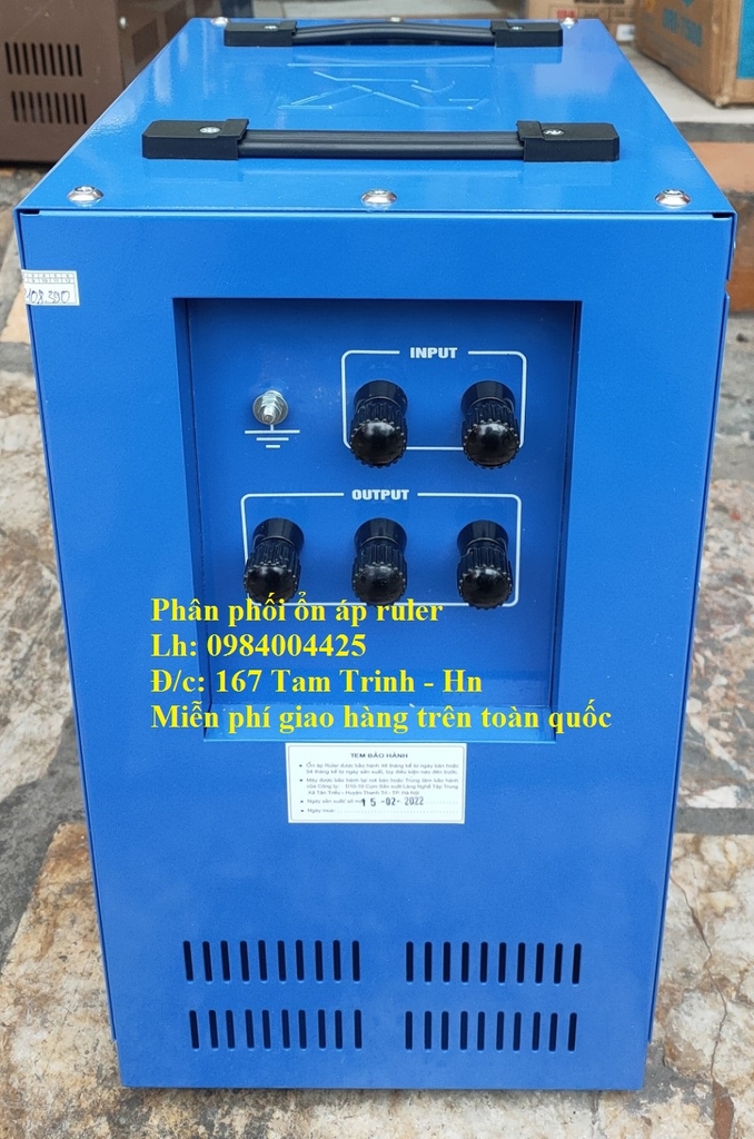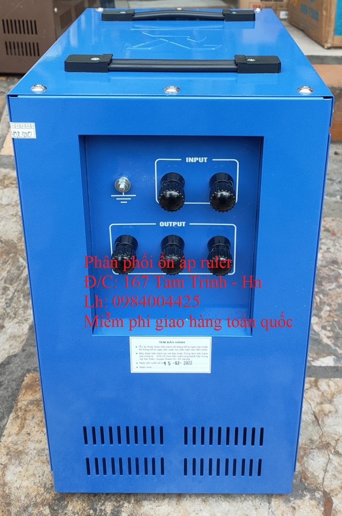 - Ổn áp Ruler 7kva giá rẻ bảo hành 48 tháng kể từ ngày mua, 12 tháng đầu nếu hỏng đổi cái mới với điều kiện bảo quản máy tốt