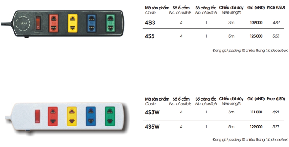 - Ổ cắm lioa 4 ổ 2 chấu 5m bảo hành 48 tháng kể từ ngày mua, 06 tháng đầu nếu hỏng đổi cái mới